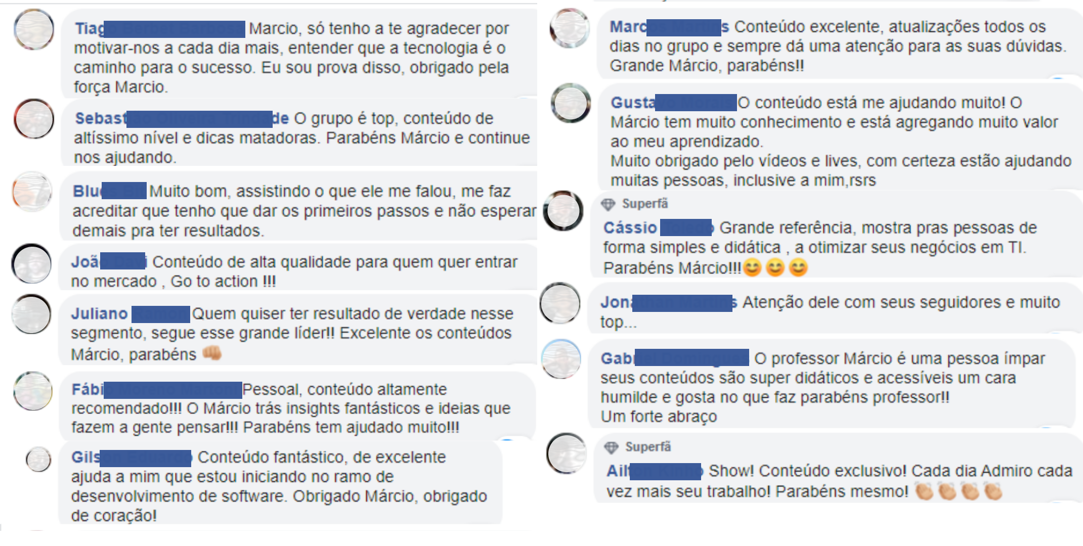 múltiplas vezes, comecei ensinar outras pessoas a conquistar os mesmos resultados, essa é minha motivação!" O QUE A GALERA TEM FALADO DO QUE APRENDEU: